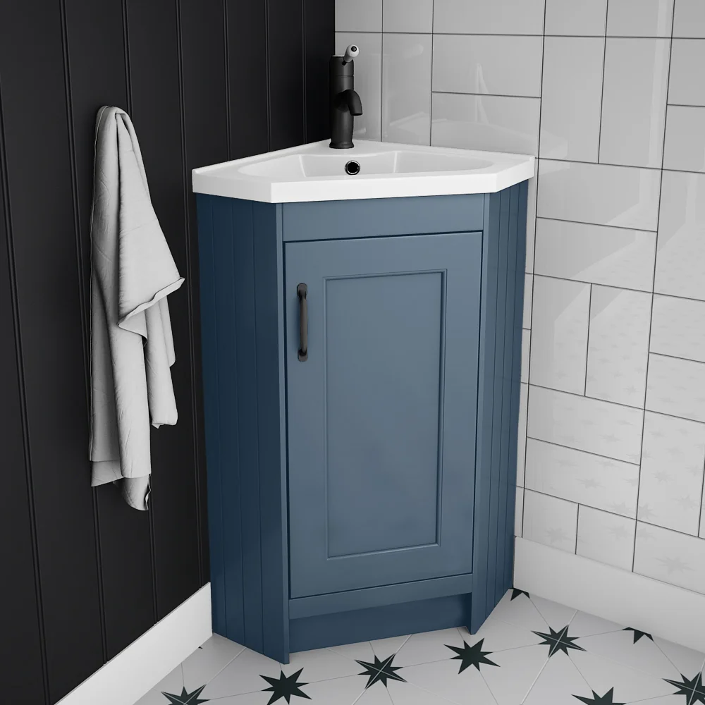 Chatsworth Traditional Blue Corner Vanity Unit with Matt Black Handle