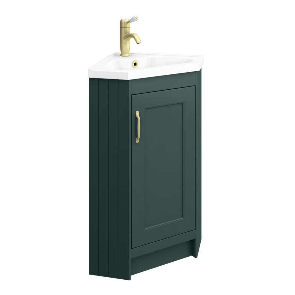 Chatsworth Traditional Green Corner Vanity Unit with Brushed Brass Handle