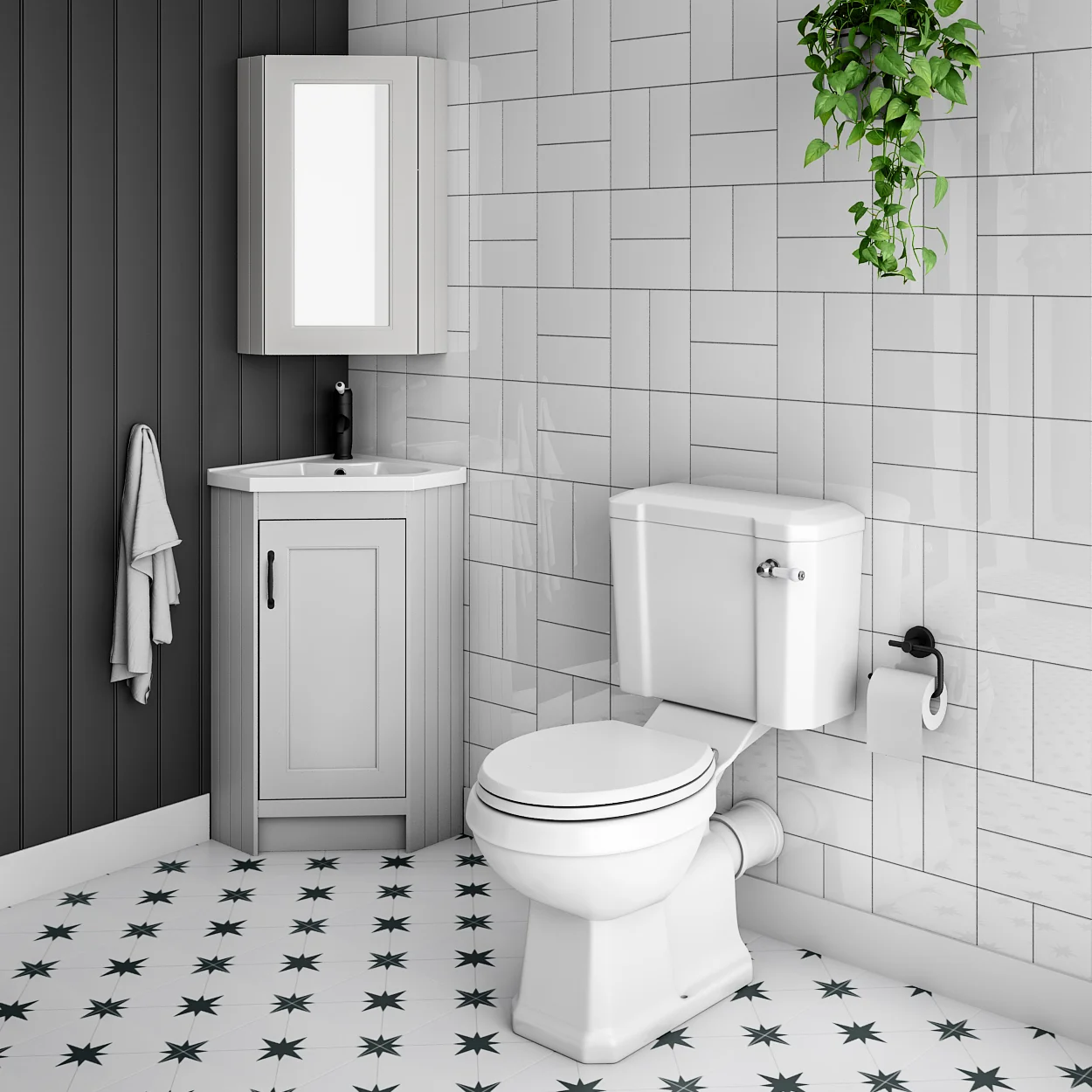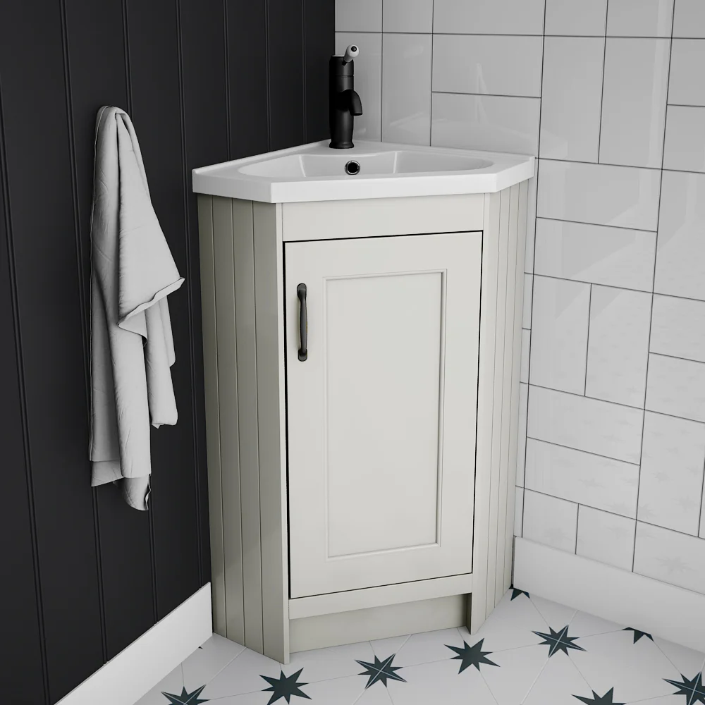 Chatsworth Traditional Grey Corner Vanity Unit with Matt Black Handle – 1 Tap Hole
