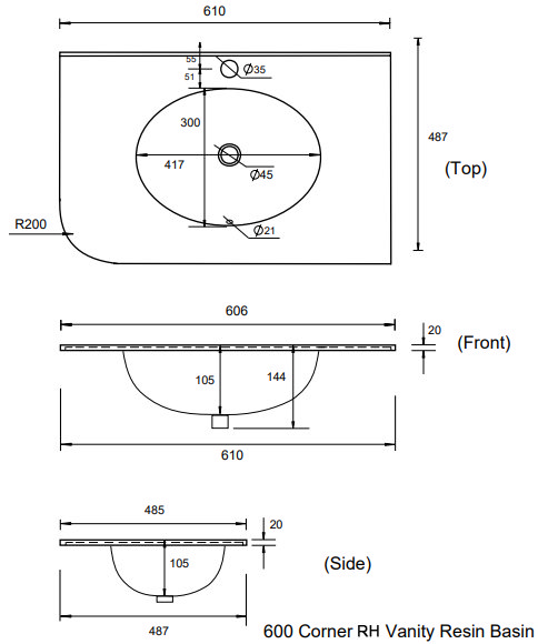 Period Bathroom Co. 610mm RH Offset Vanity Unit with White Stone Resin Basin – White