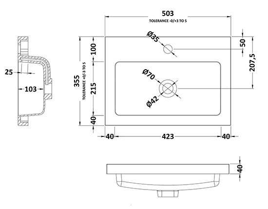 (1) 500 Rear Tap Polymarble Basin 1TH