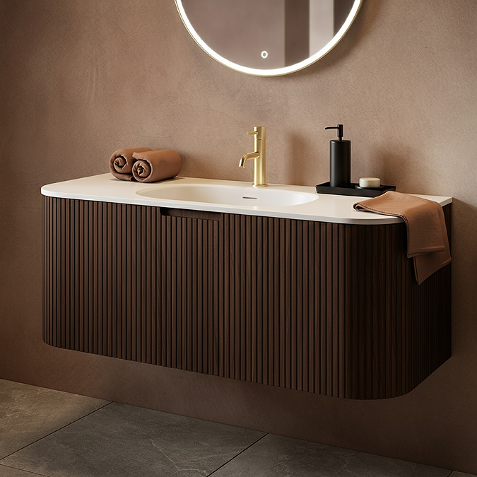 Arezzo 1200 Slatted Curved Basin Unit – Walnut