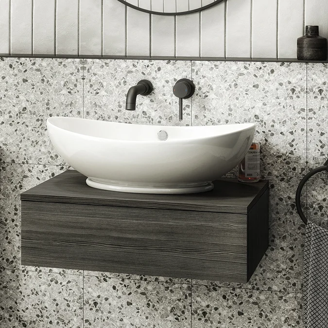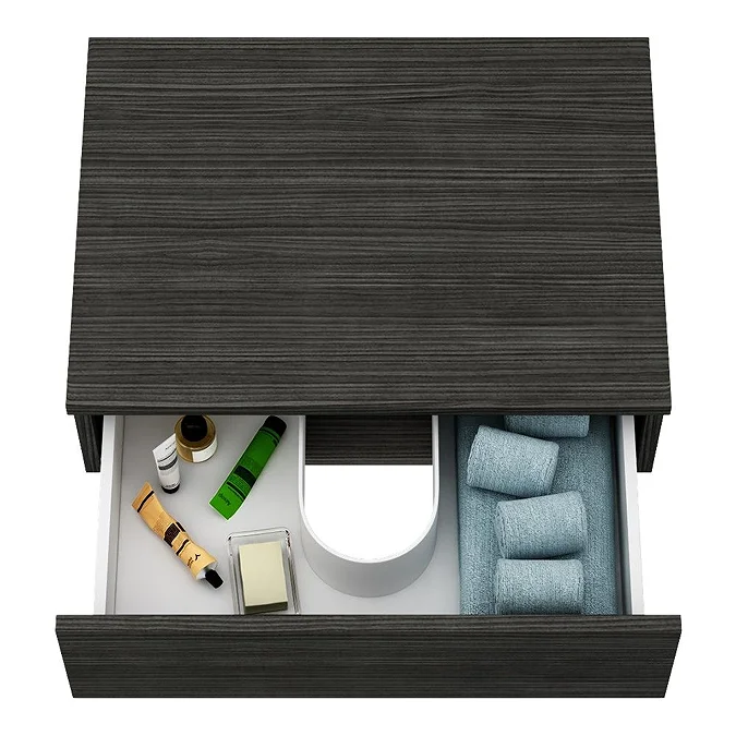 (1) Wall Hung Single Drawer Vanity Unit (602 x 450mm) – Black Woodgrain