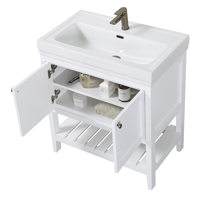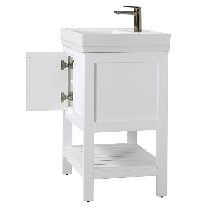 - Finish: Smooth Matt White Cabinet / Gloss White Ceramic Basin